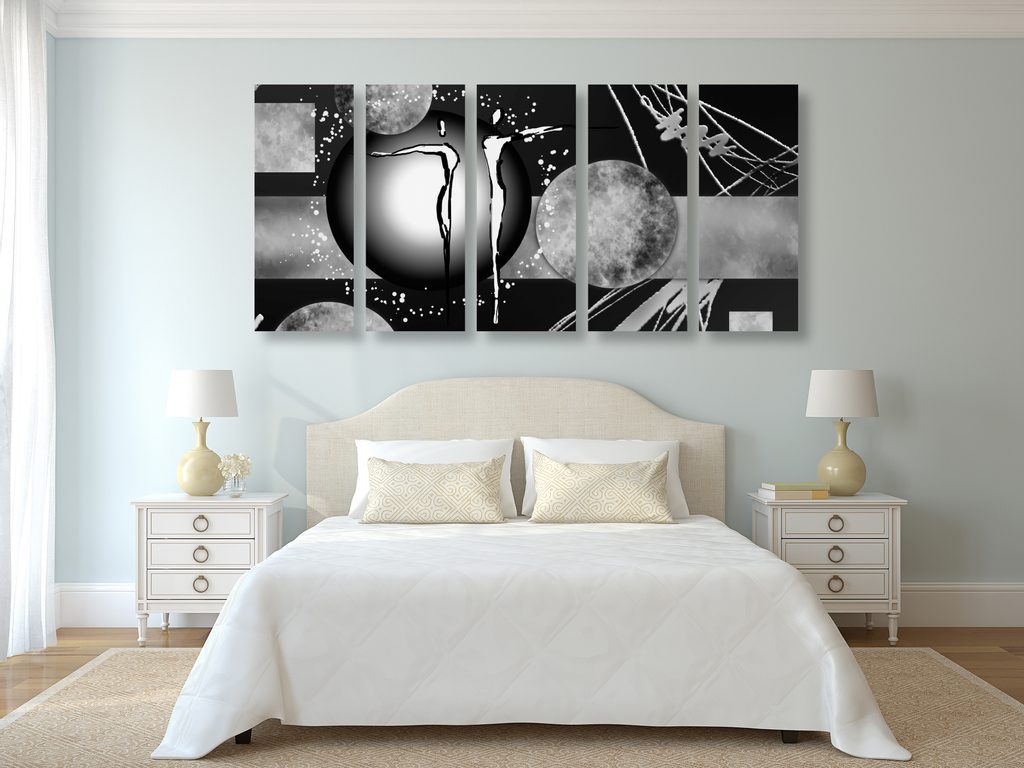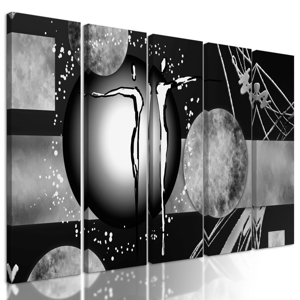 5-dílný obraz abstrakce spřízněných duší v černobílém provedení