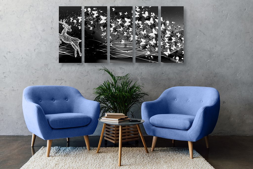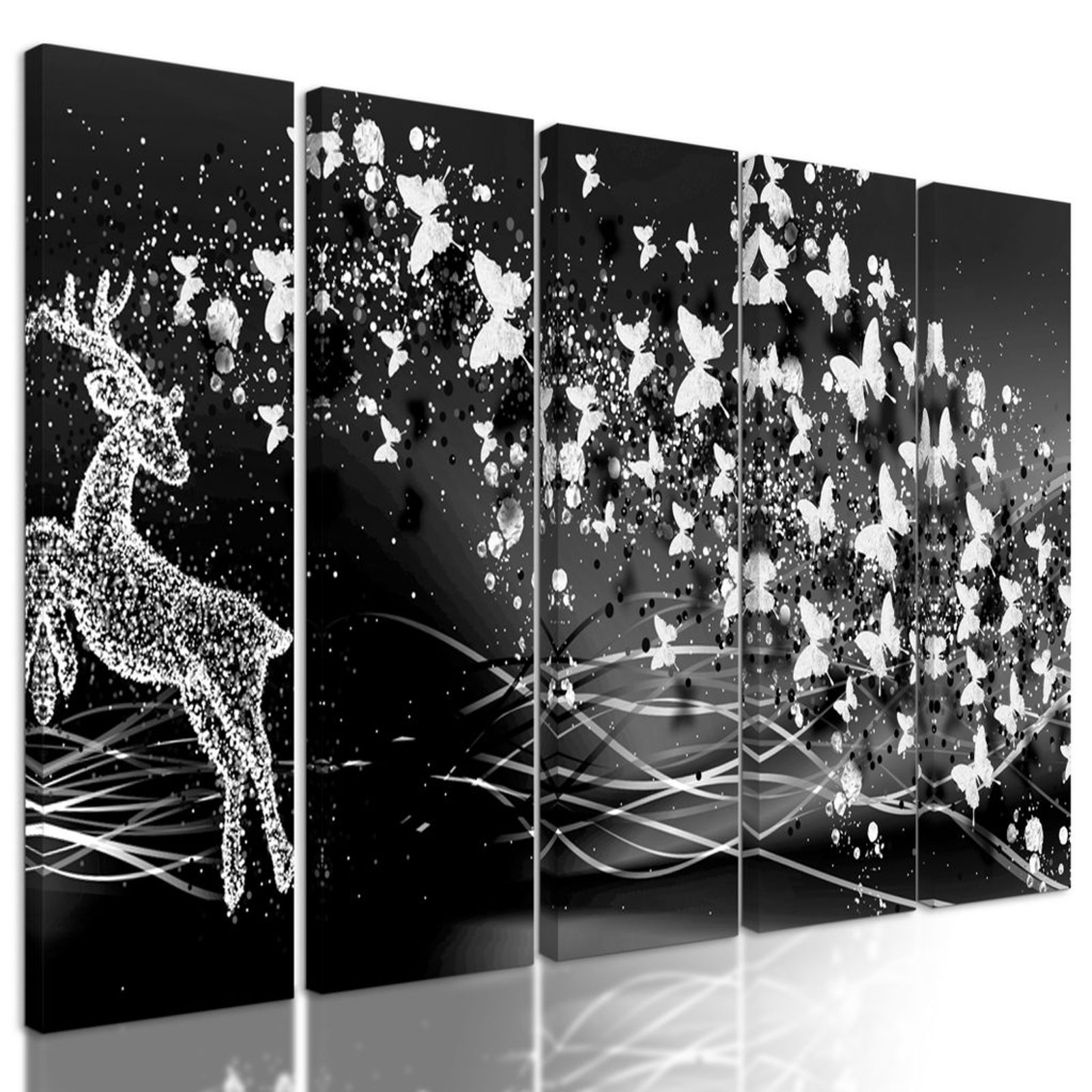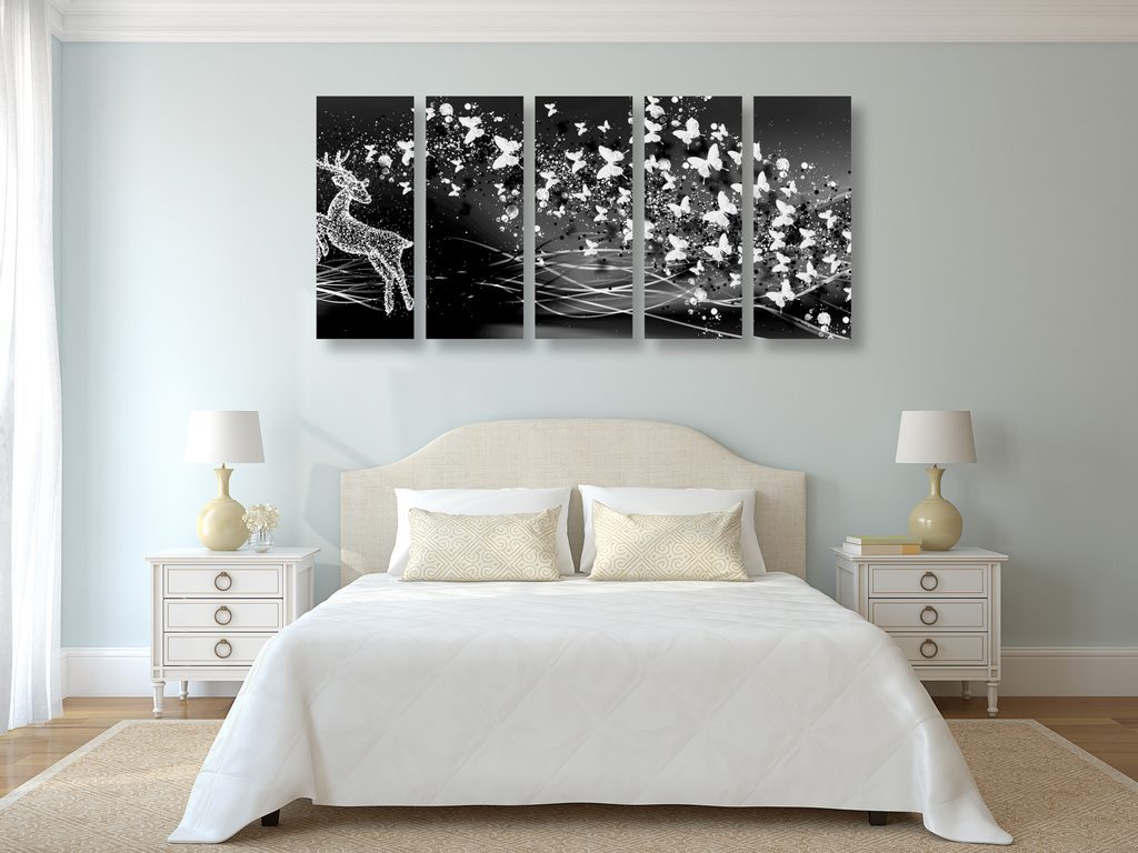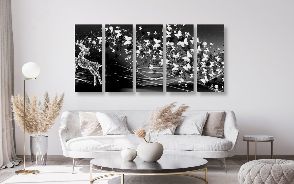 5-dílný obraz abstrakce vesmírného Jelena v černobílém provedení
