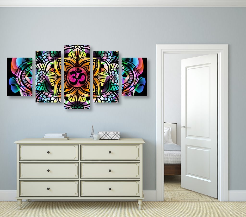 5-dílný obraz nekonečná Mandala v hnědém provedení