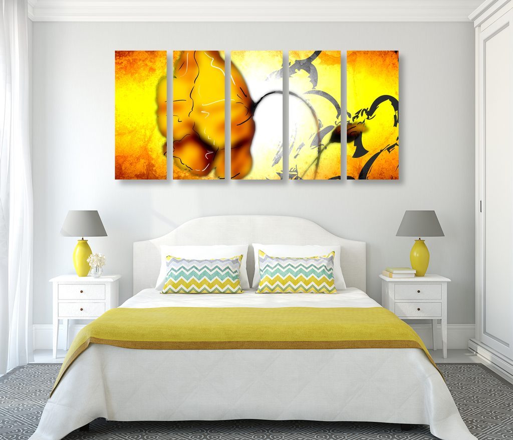 5-dílný obraz abstraktní oranžový květ