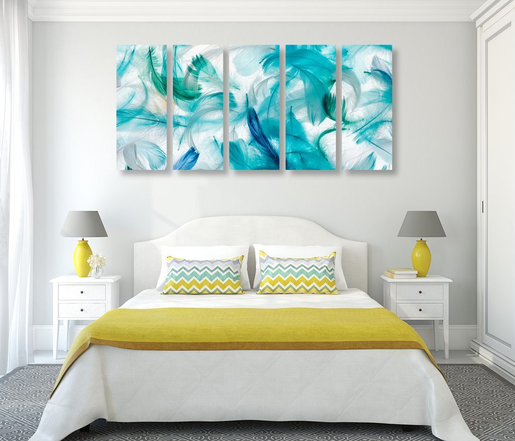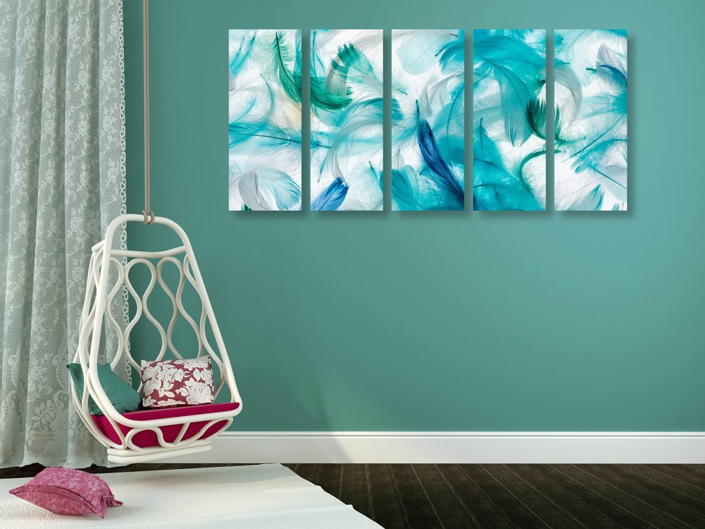 5-dílný obraz abstraktní peříčka na bílém pozadí