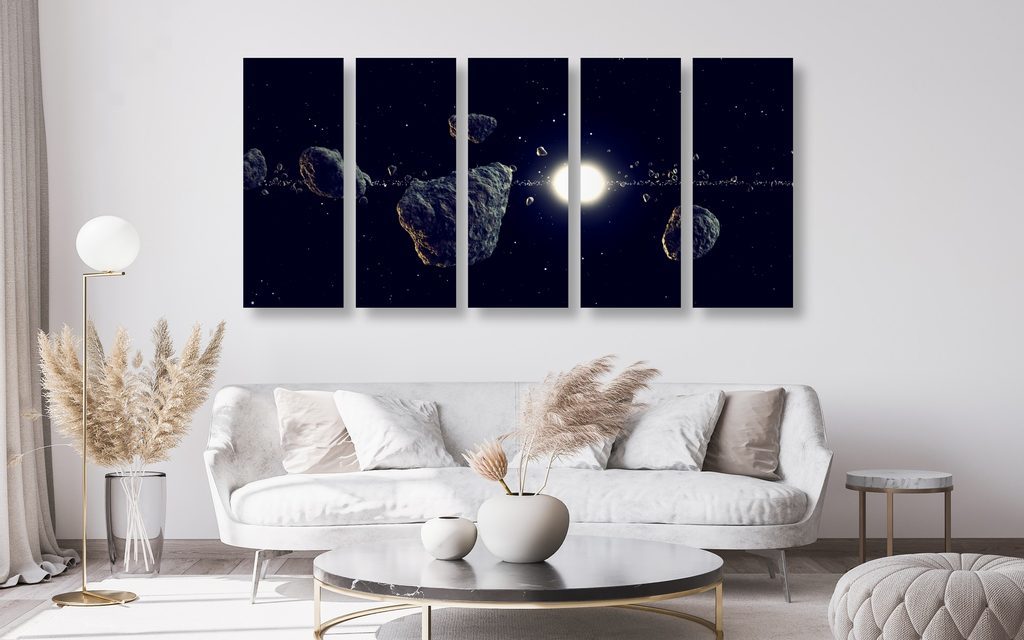 5-dílný obraz neznámá futuristická planeta v černobílém provedení