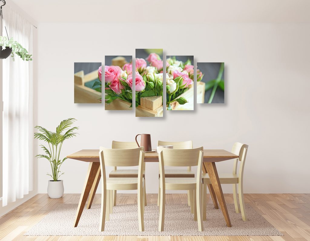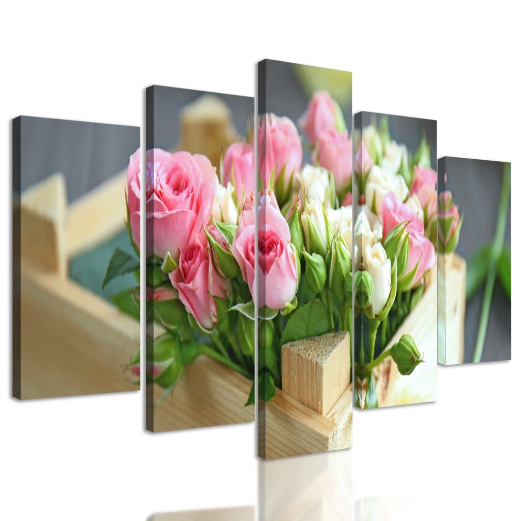 5-dílný obraz bednička plná růží