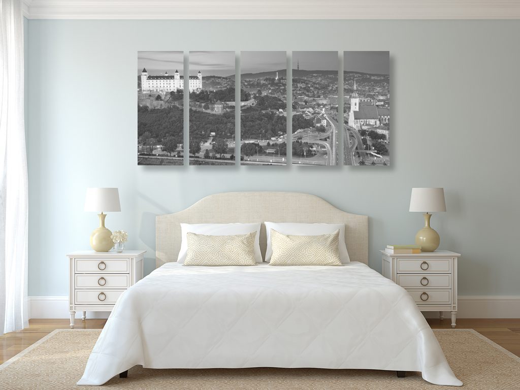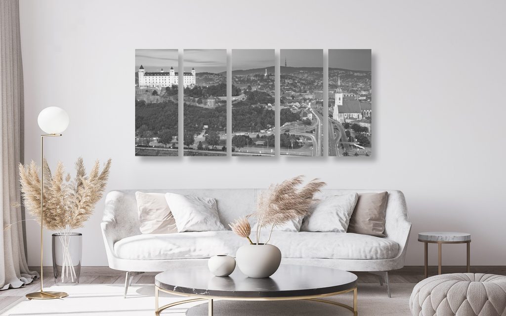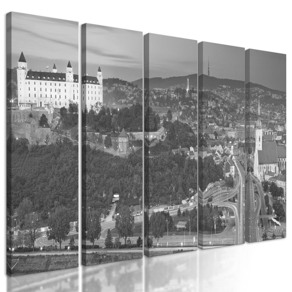 5-dílný obraz Bratislavský hrad v černobílém provedení