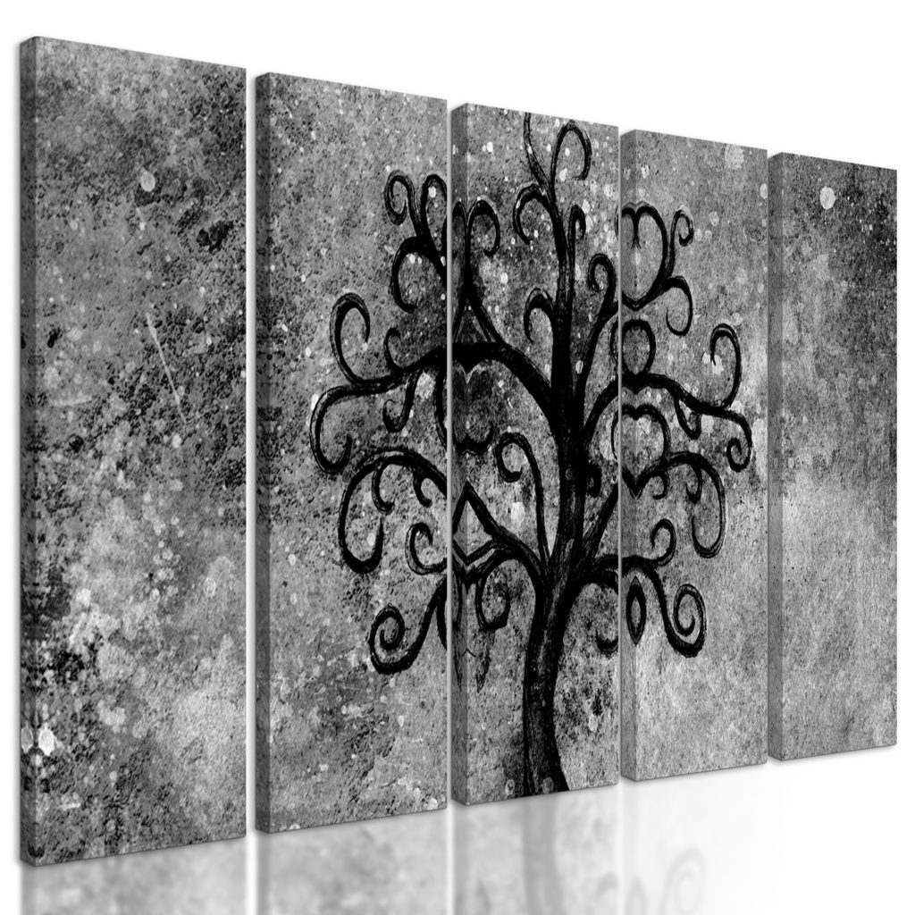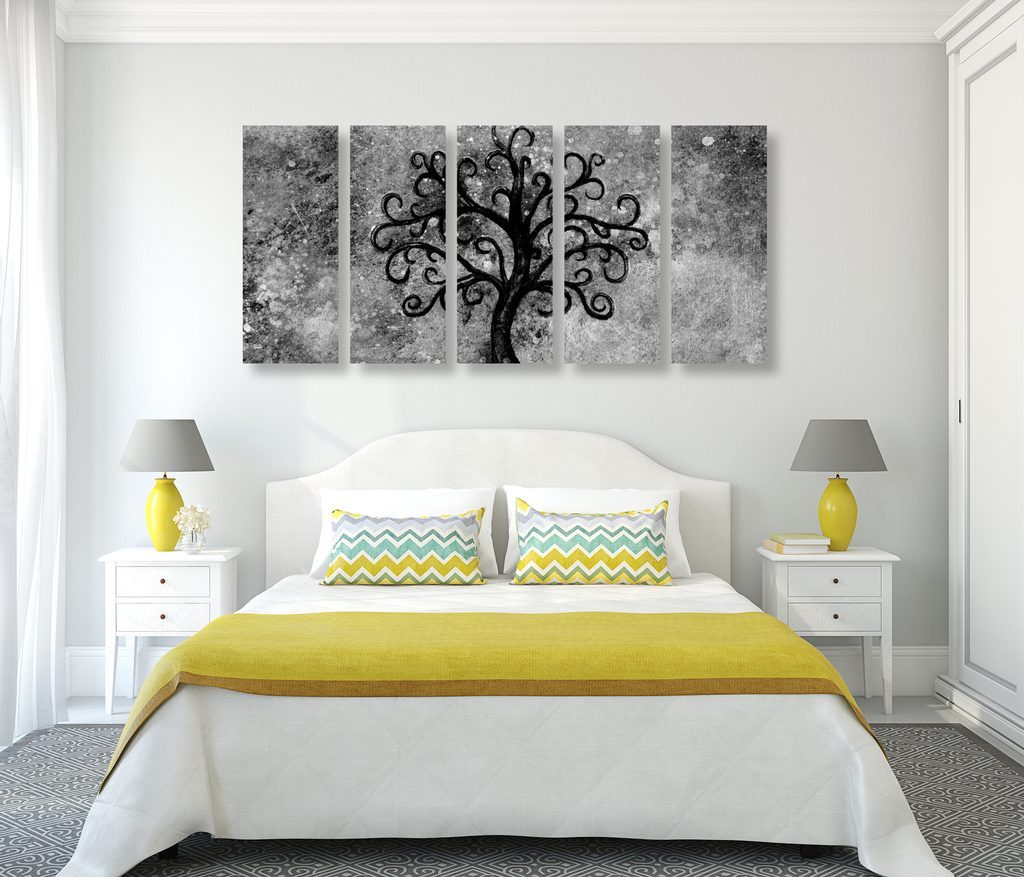 5-dílný obraz černobílý strom života v nekonečném vesmíru
