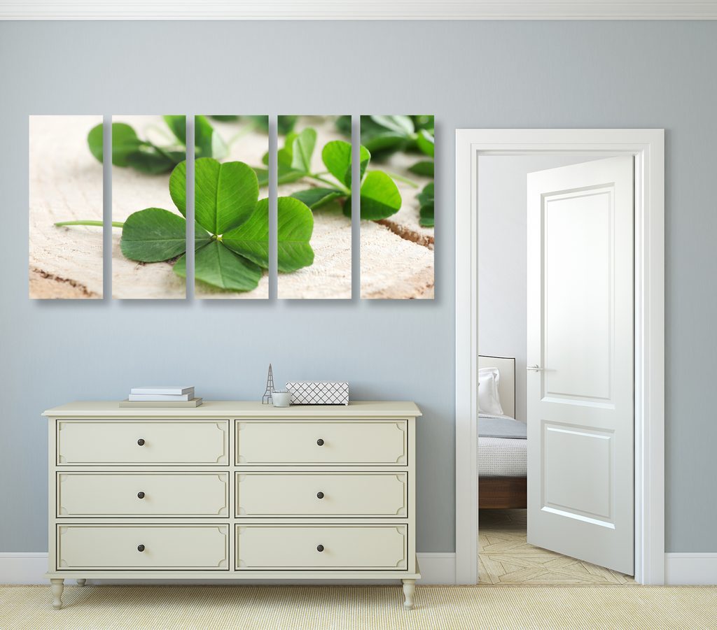 5-dílný obraz čtyřlístky pro štěstí