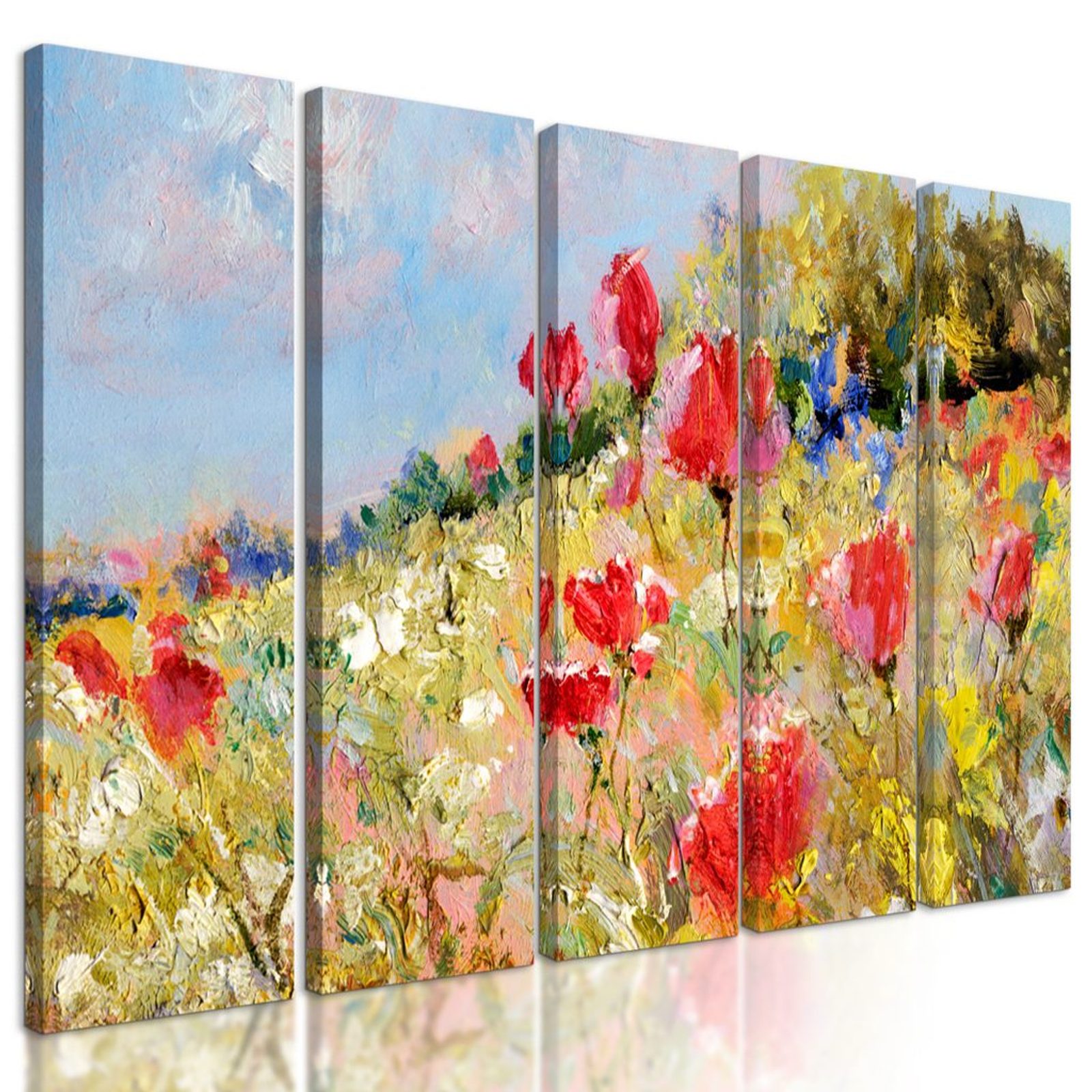 5-dílný obraz divoké máky na louce