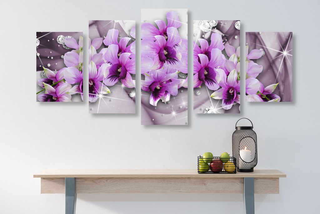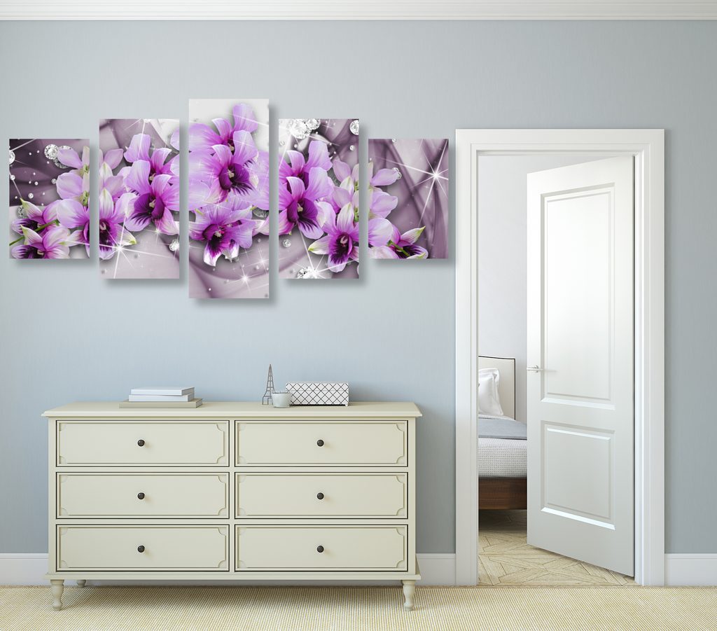 5-dílný obraz elegantní květiny na abstraktním pozadí