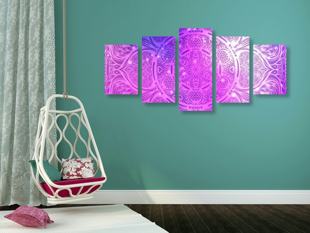 5-dílný obraz fialová galaktická Mandala