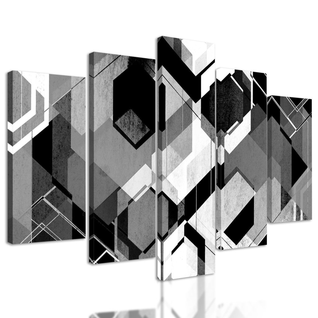 5-dílný obraz futuristická abstrakce tvarů v černobílém provedení