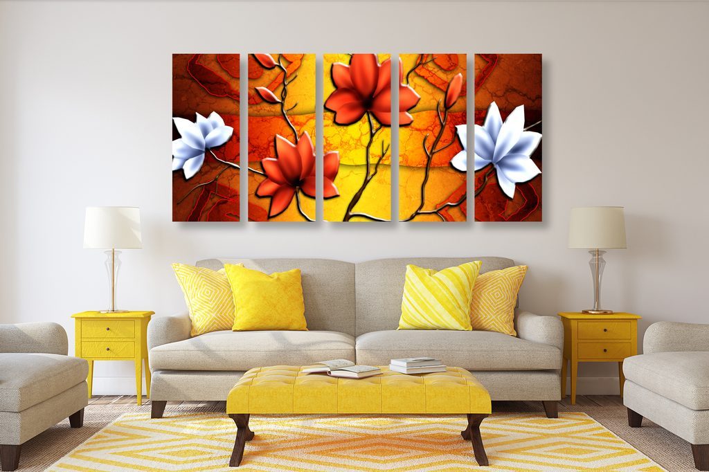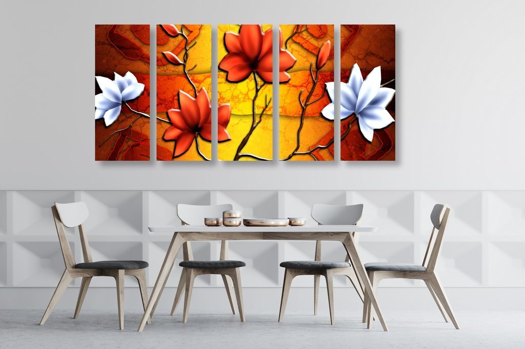 5-dílný obraz výjimečný rakytník v abstraktním provedení