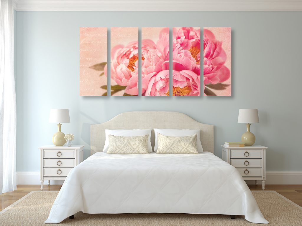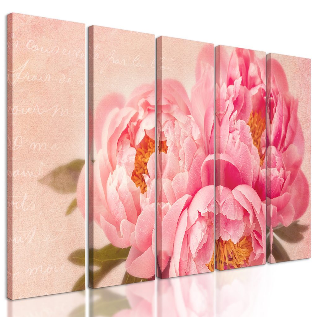 5-dílný obraz jemná pivoňka