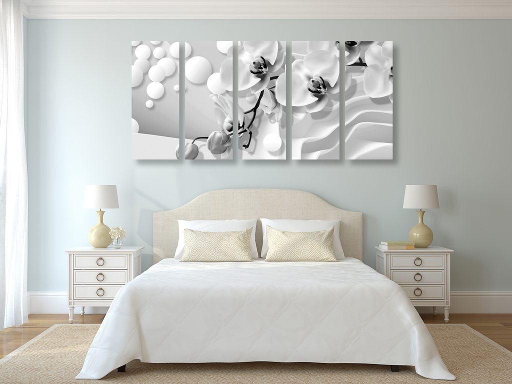 5-dílný obraz jemné znázornění orchideje v černobílém provedení