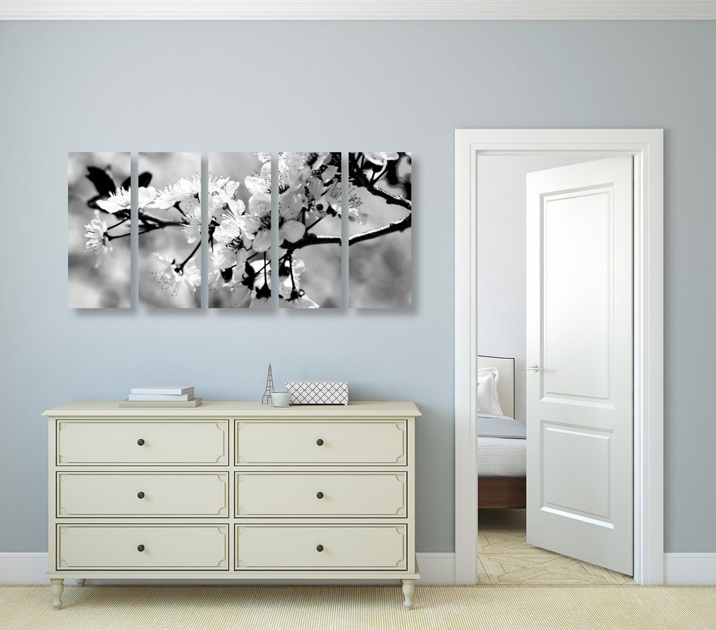 5-dílný obraz geografická mapa světa v černobílém provedení