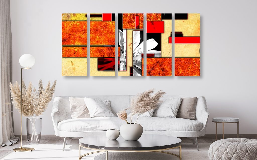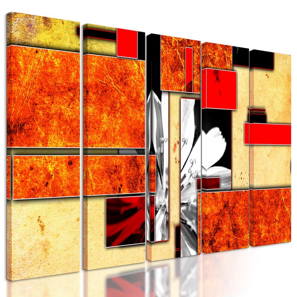 5-dílný obraz květ v oranžovém rámu