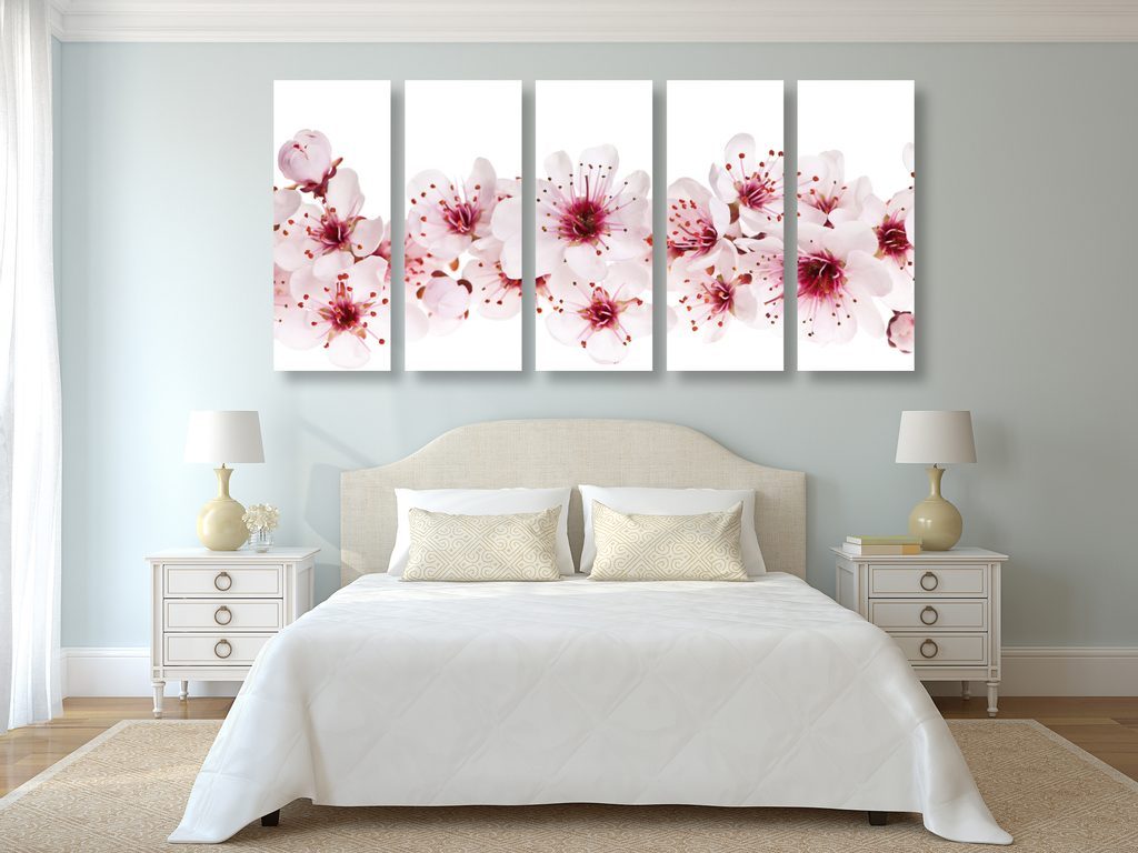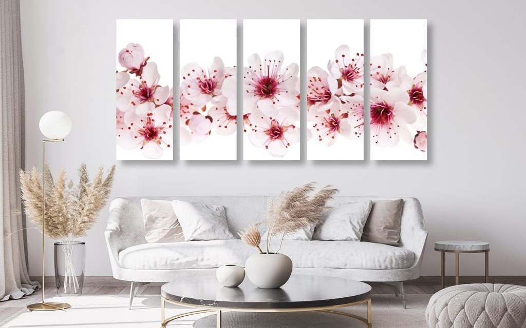 5-dílný obraz květiny třešně na bílém pozadí