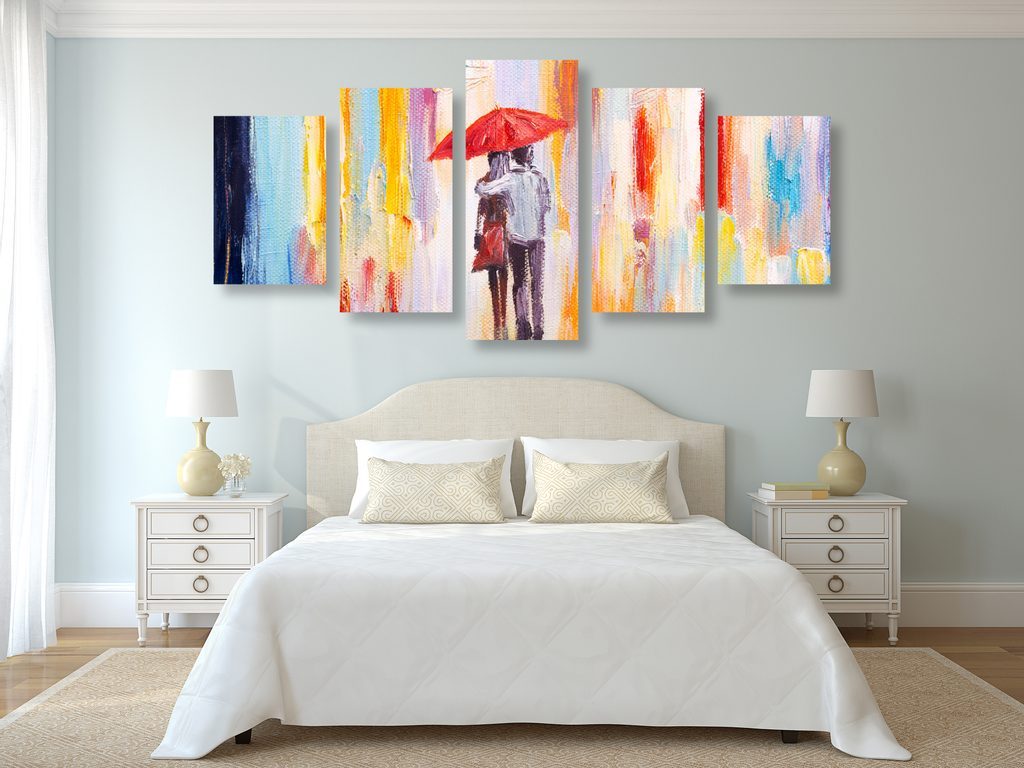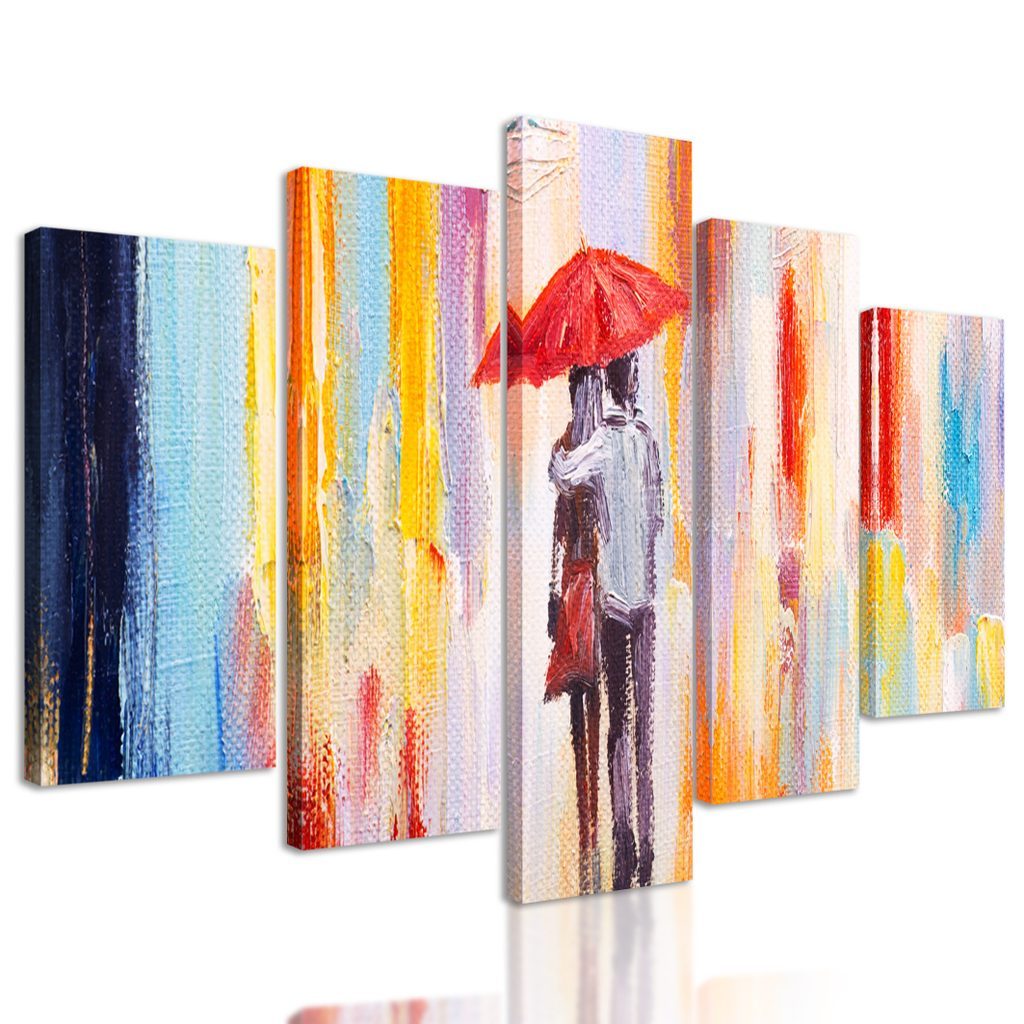 5-dílný obraz láskyplná procházka pod deštníkem