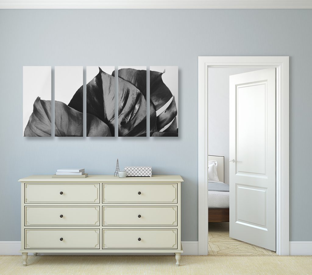 5-dílný obraz loďka pod ruškem tmy v černobílém provedení