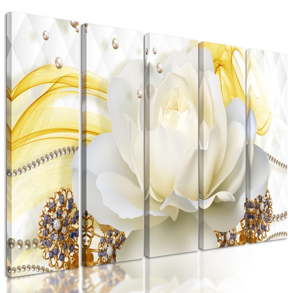 5-dílný obraz luxusní květ s perlami