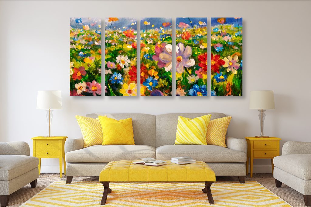 5-dílný obraz malba květinové louky