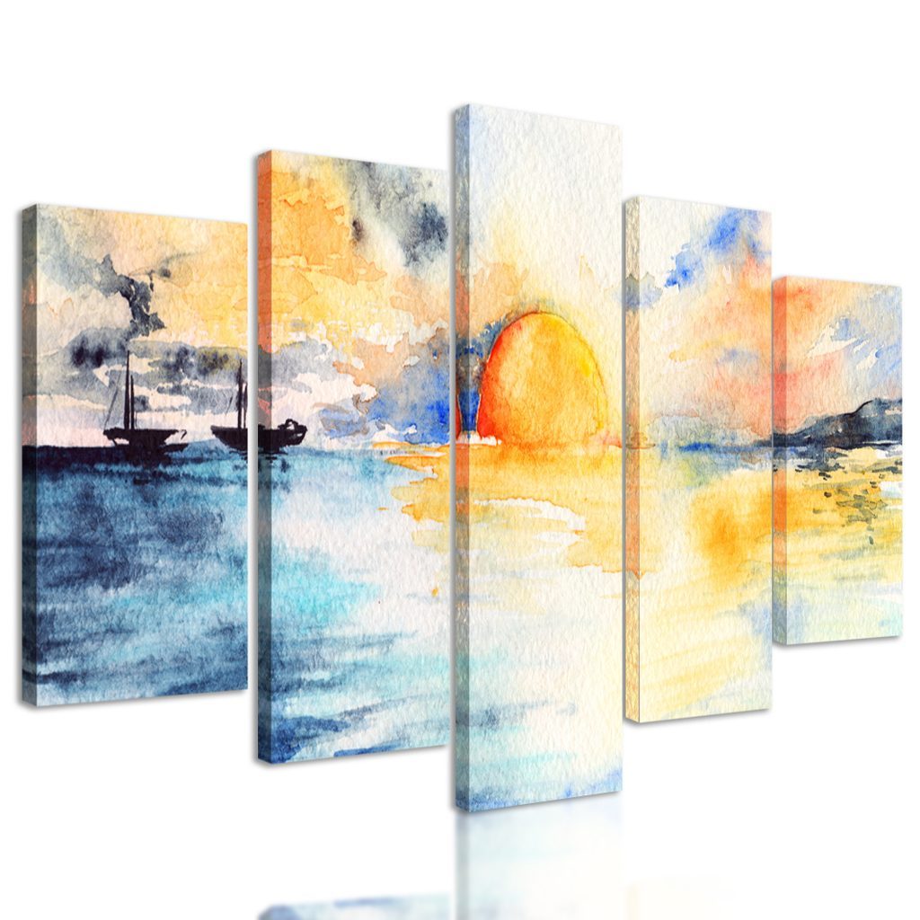 5-dílný obraz malba západu slunce nad mořem