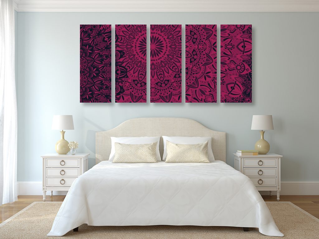 5-dílný obraz nekonečná Mandala v růžovém provedení
