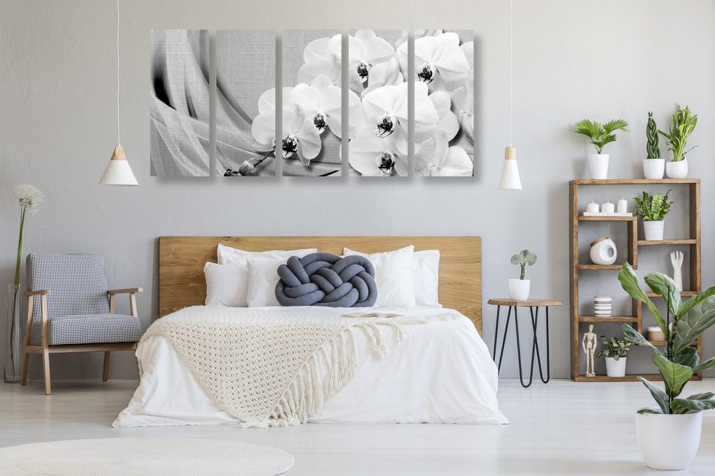 5-dílný obraz nádherná černobílá orchidej
