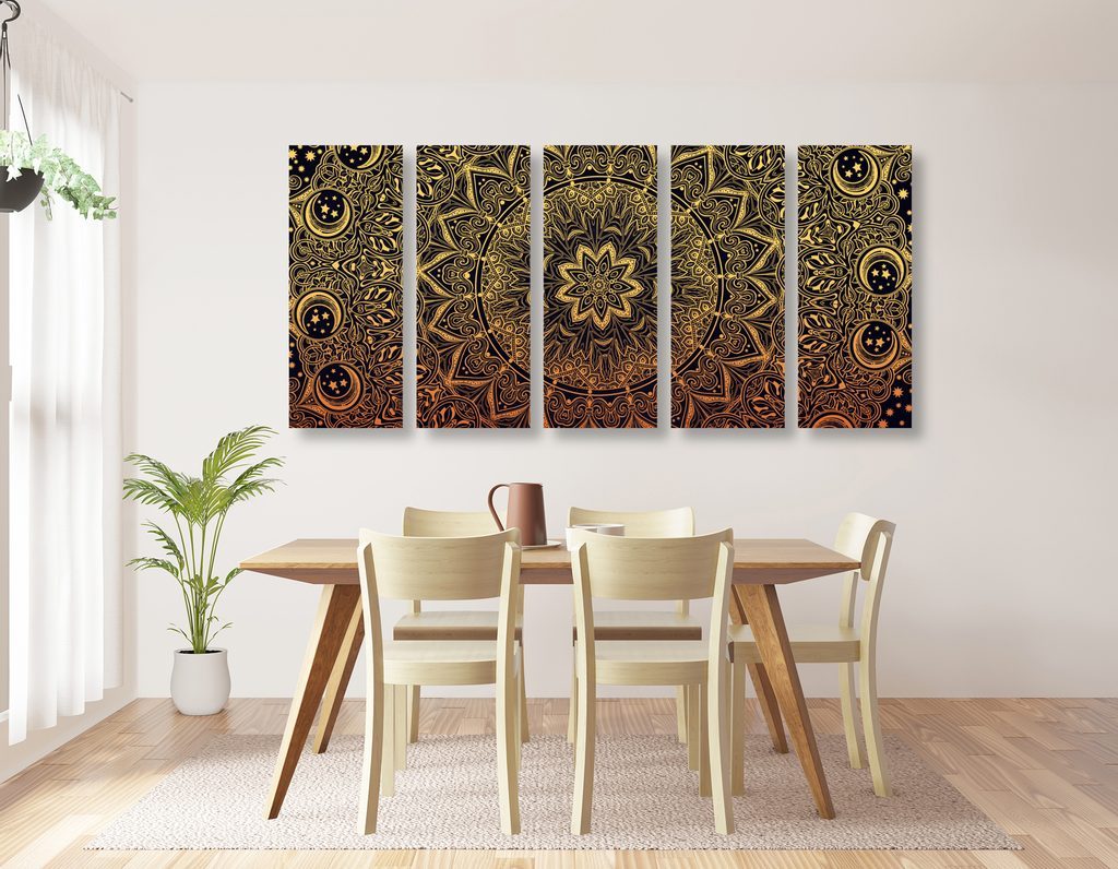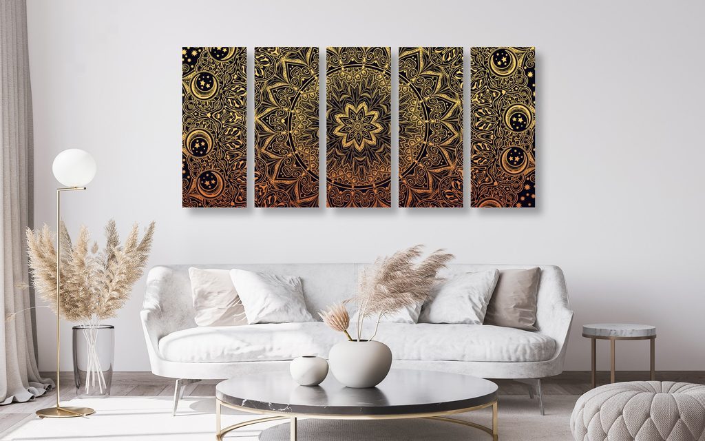 5-dílný obraz nádherná Mandala ve zlaté barvě
