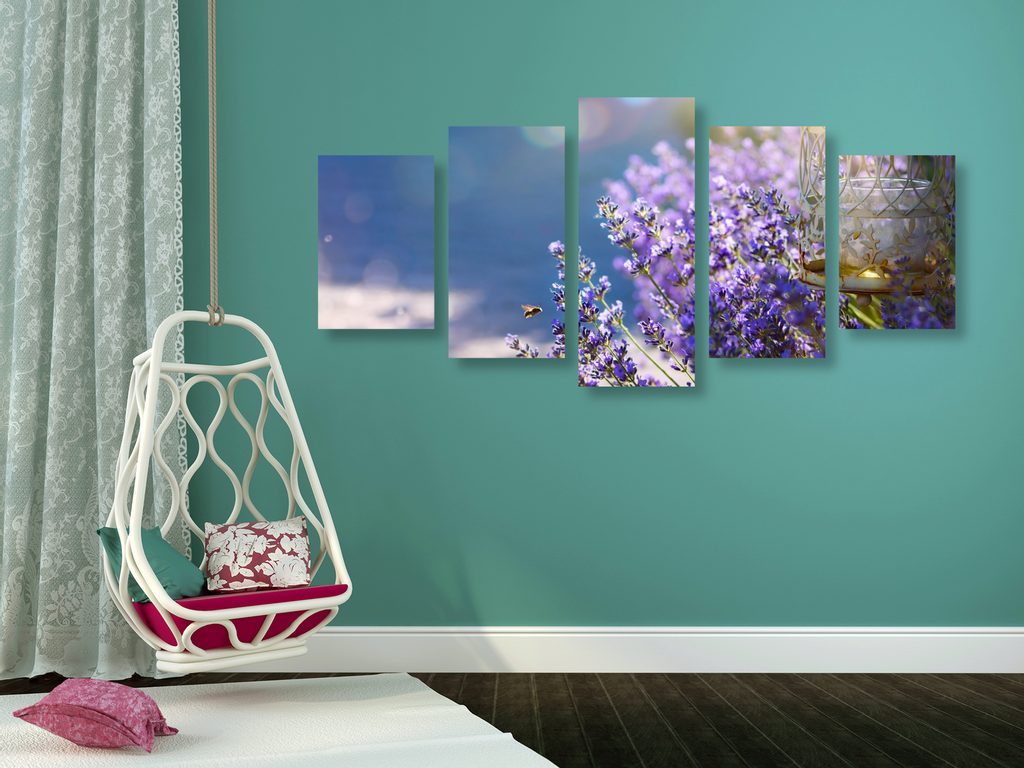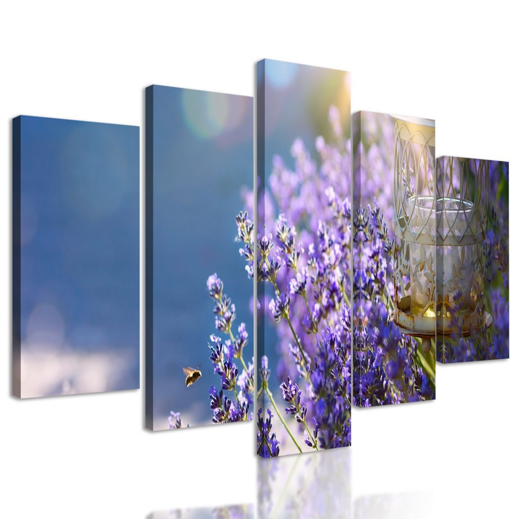 5-dílný obraz nádherné modro-fialové květy levandule