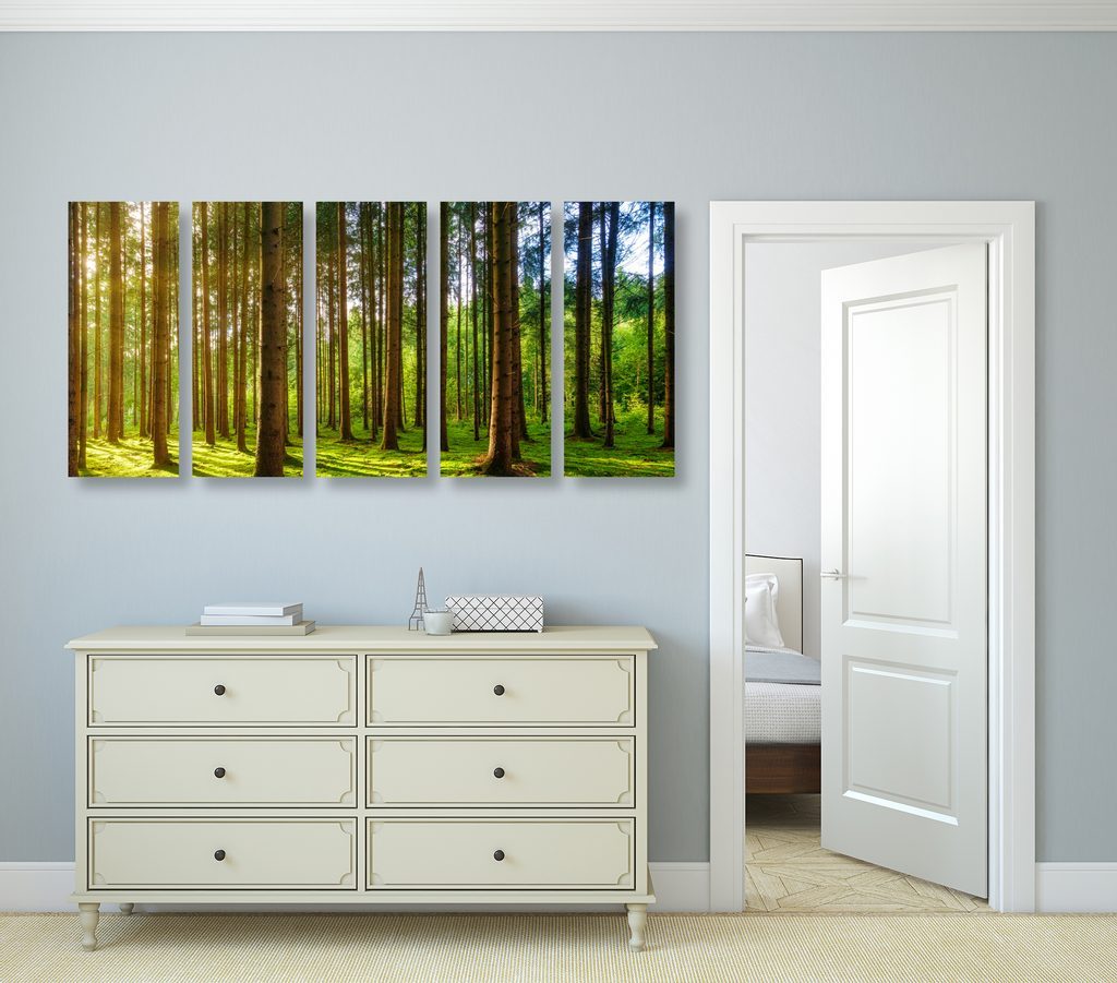 5-dílný obraz nádherné paprsky slunce mezi stromy