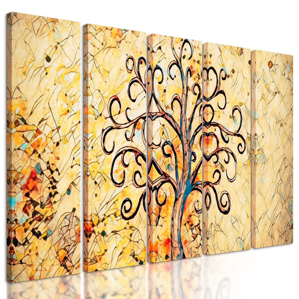 5-dílný obraz nehynoucí strom života v černobílém provedení