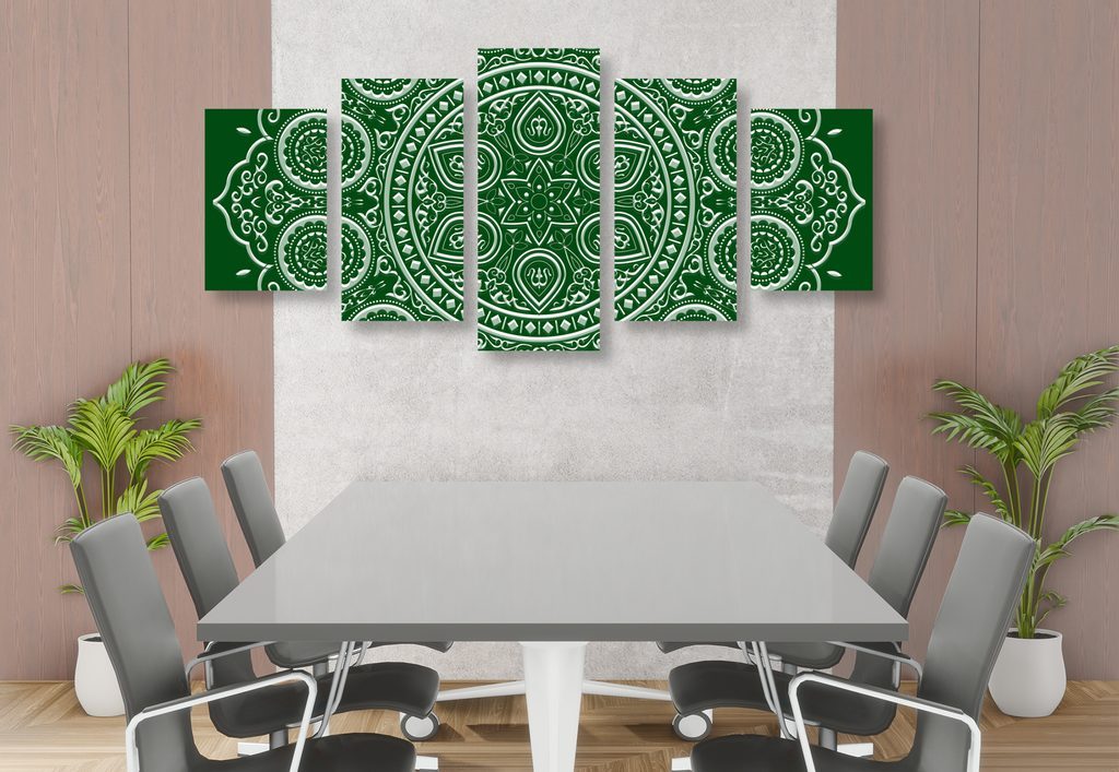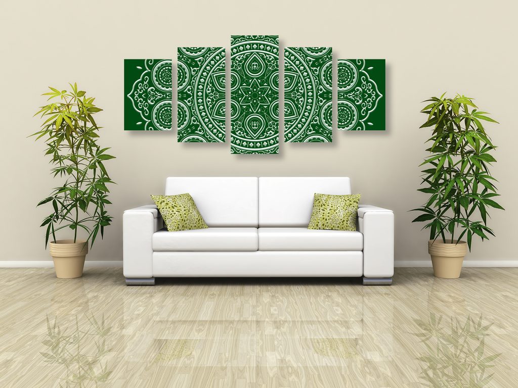 5-dílný obraz něžná Mandala na zeleném pozadí