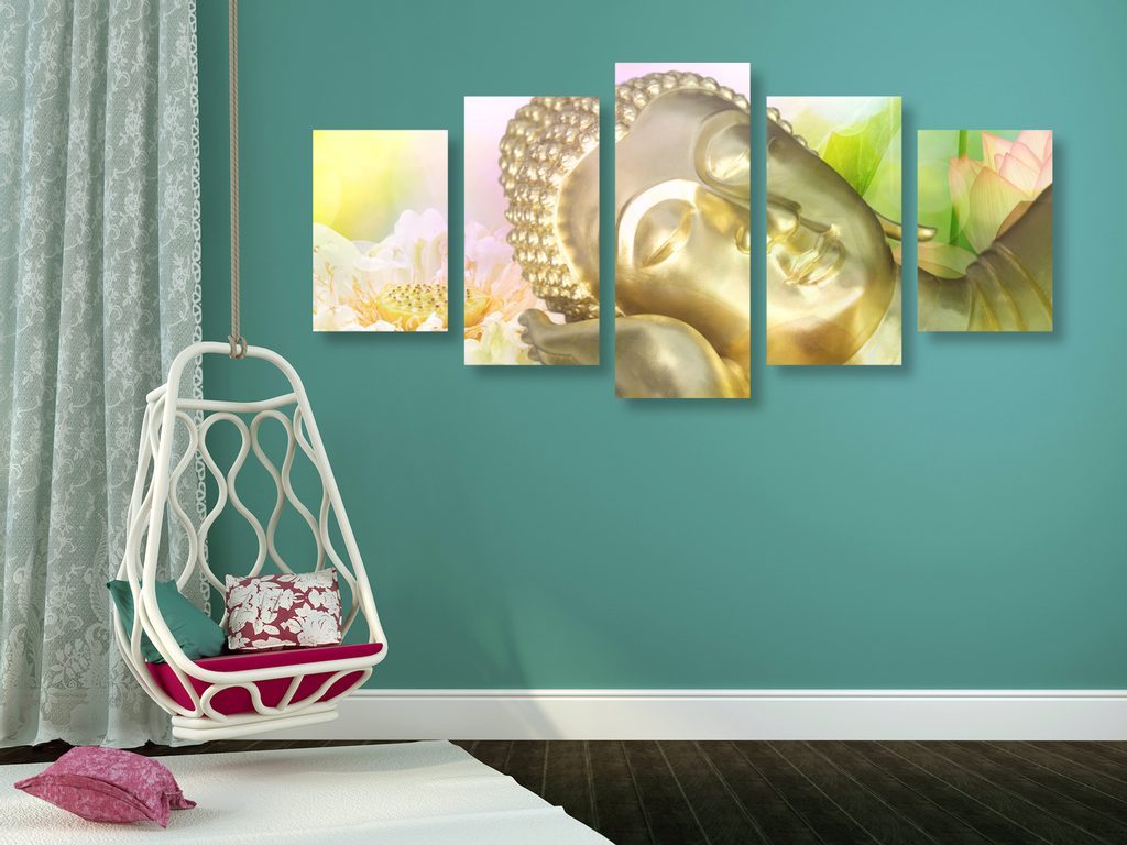 5-dílný obraz zahrada Feng Shui v černobílém provedení