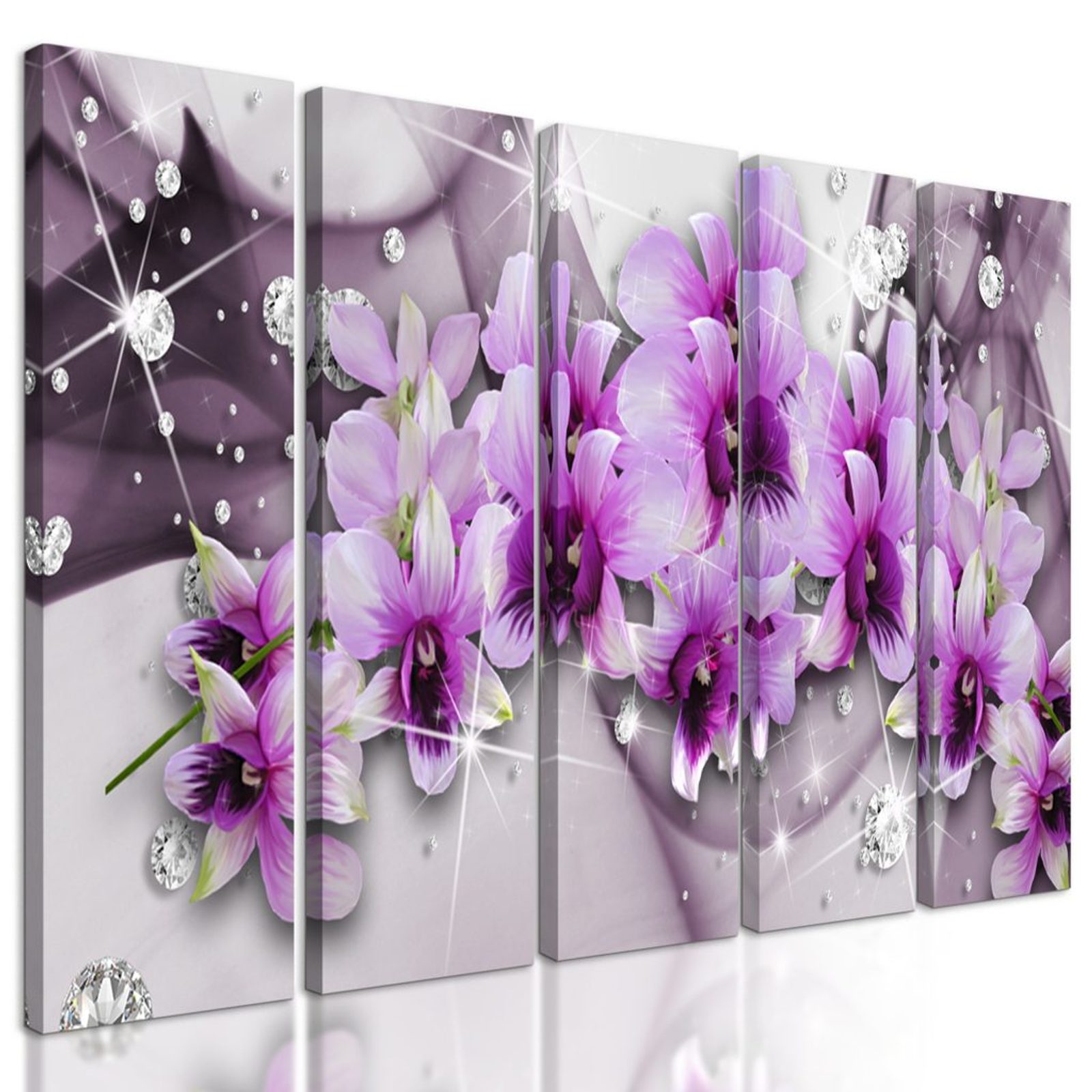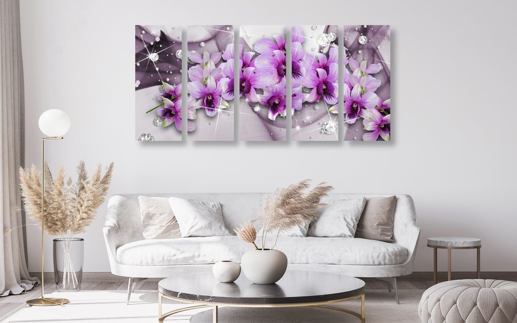 5-dílný obraz okouzlující květiny na abstraktním pozadí