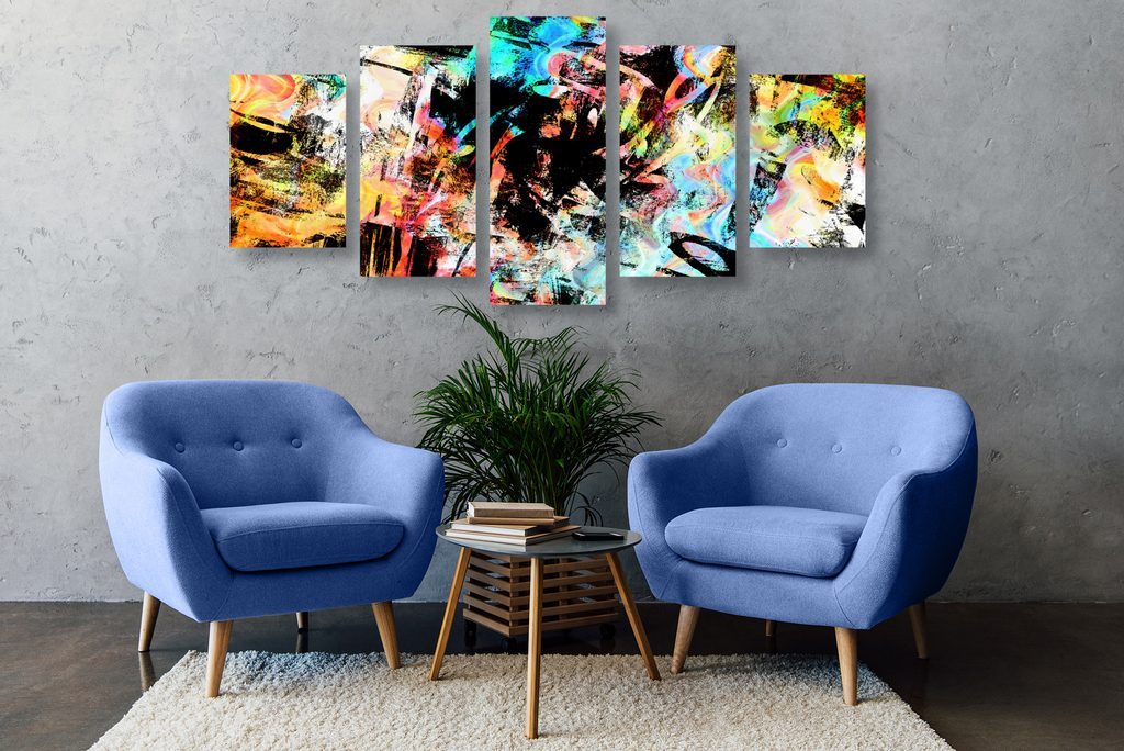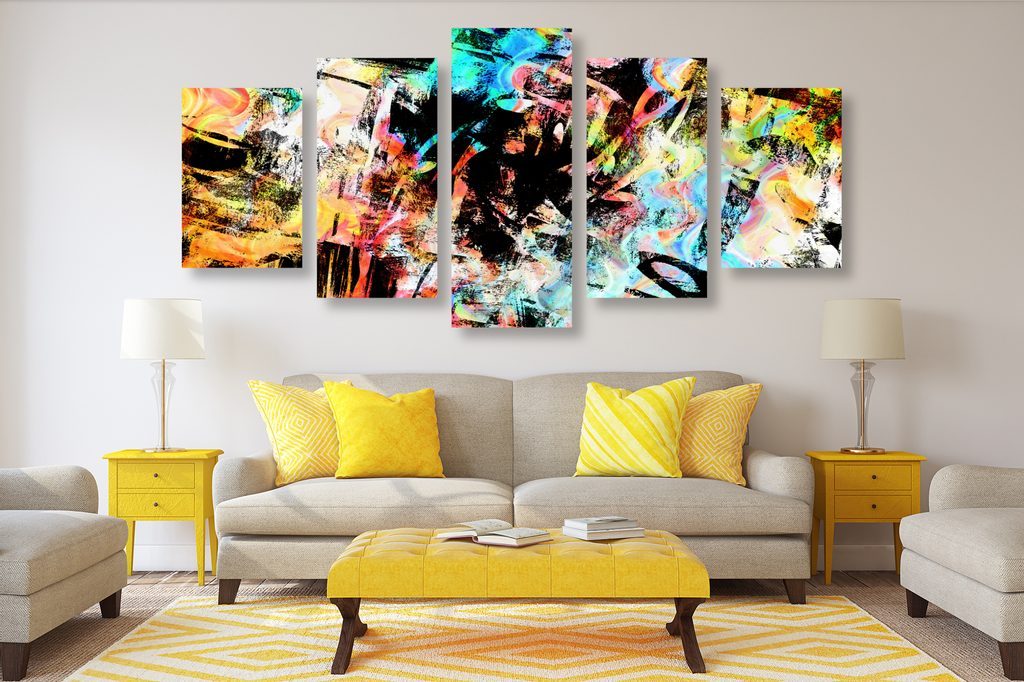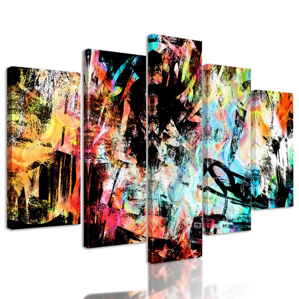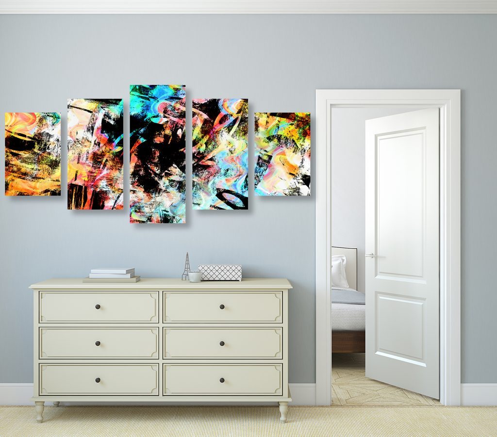 5-dílný obraz abstrakce tvarů v pestrobarevném provedení