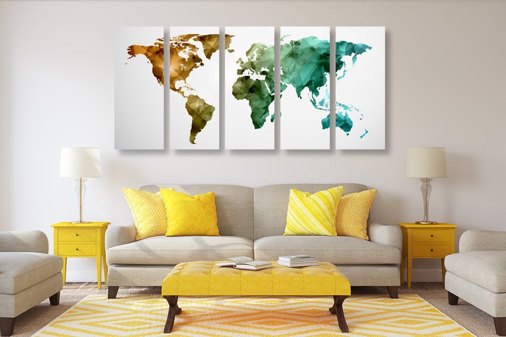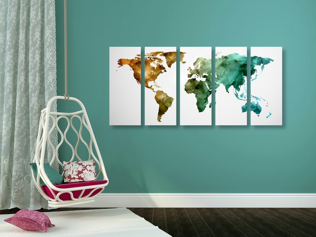 5-dílný obraz pestrobarevná mapa světa tvořená polygony