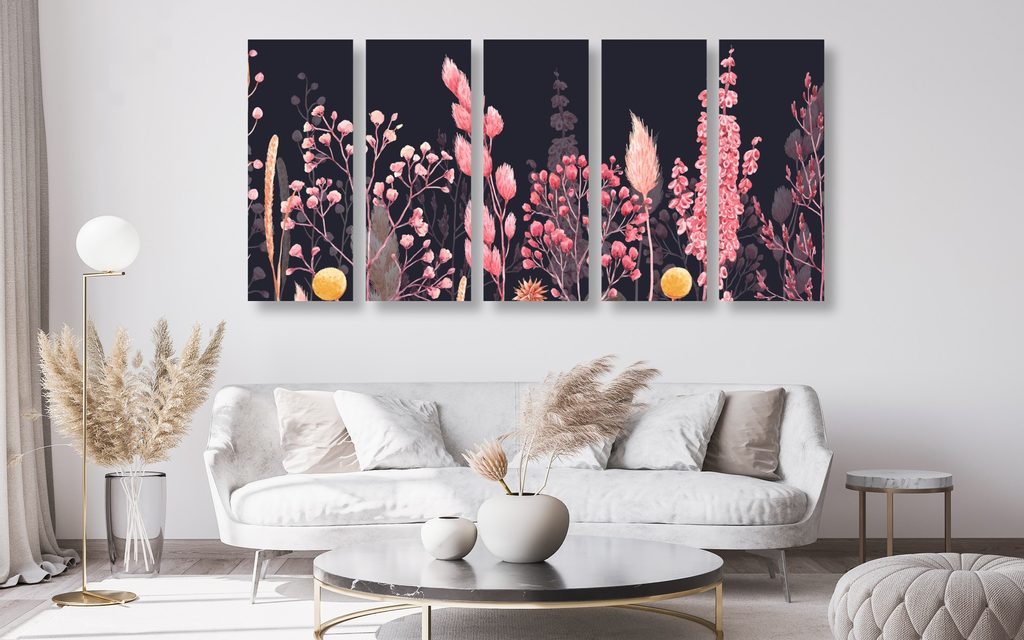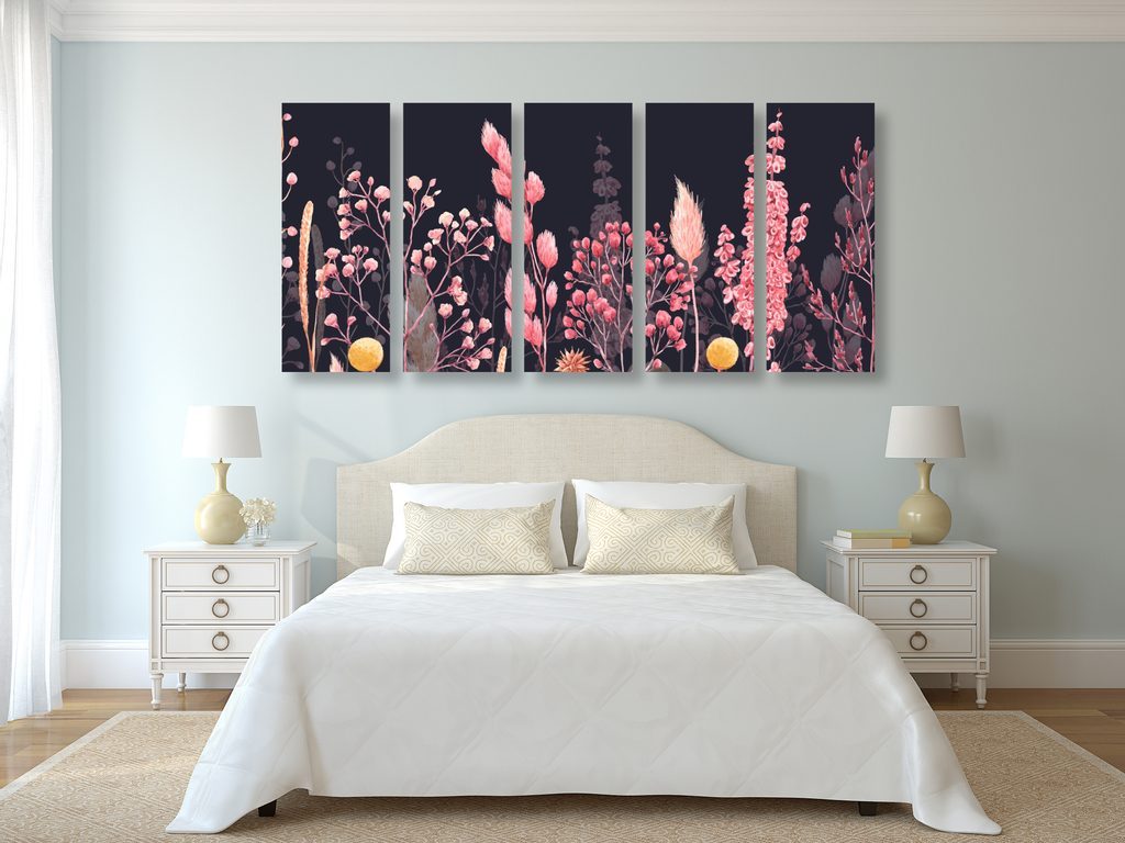 5-dílný obraz růžová rozmanitost trav