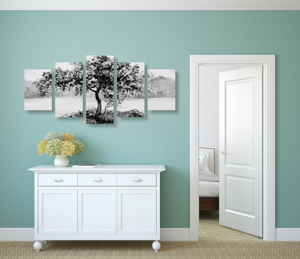 5-dílný obraz samotná třešeň v černobílém provedení