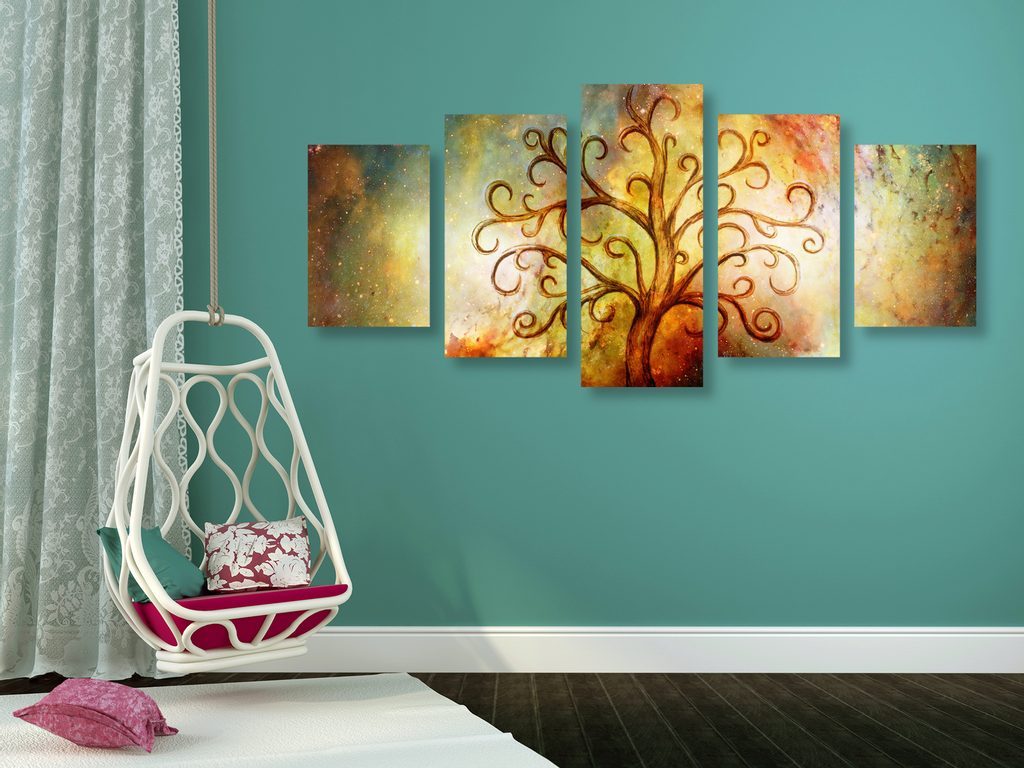 5-dílný obraz strom života na abstraktním pozadí