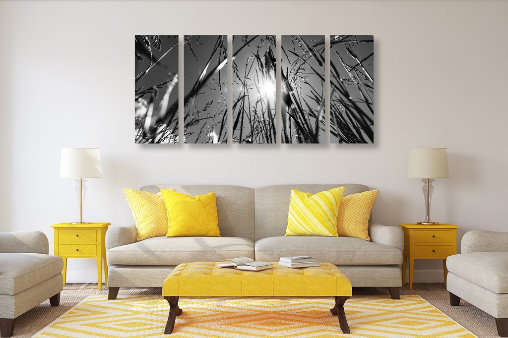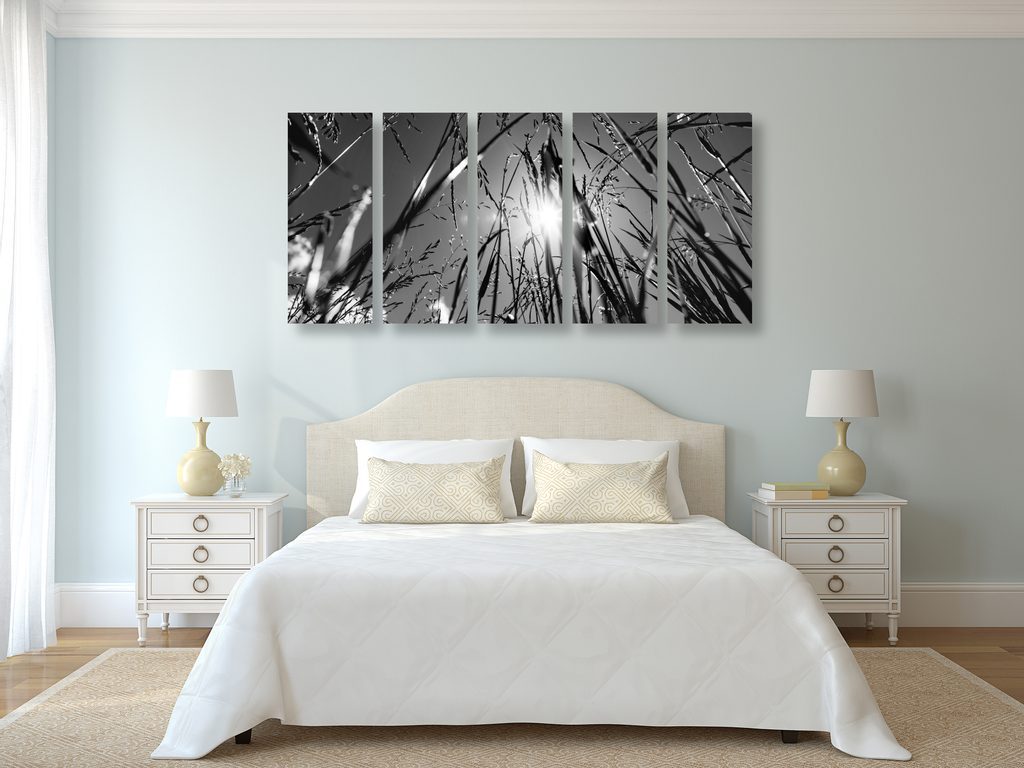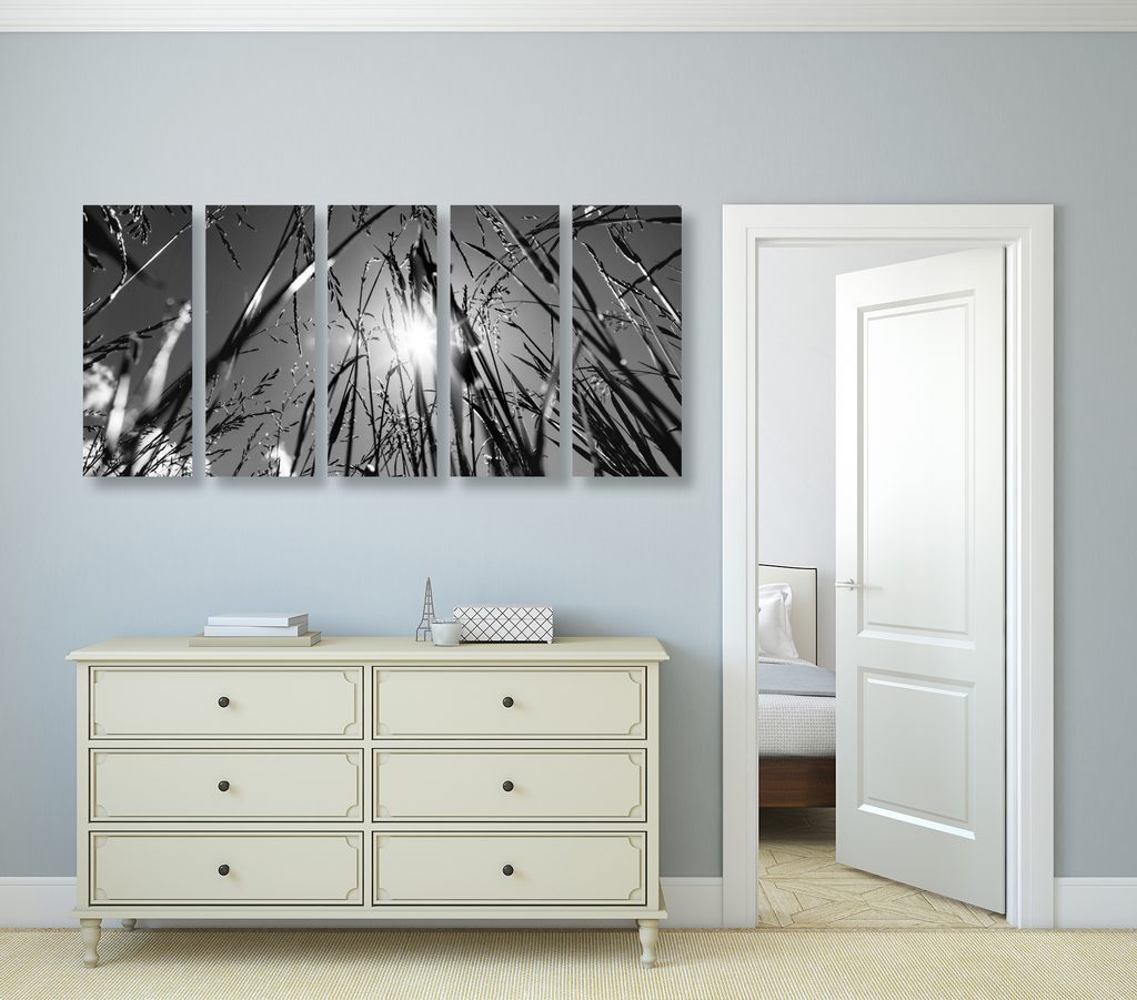 5-dílný obraz umělecká louka v černobílém provedení