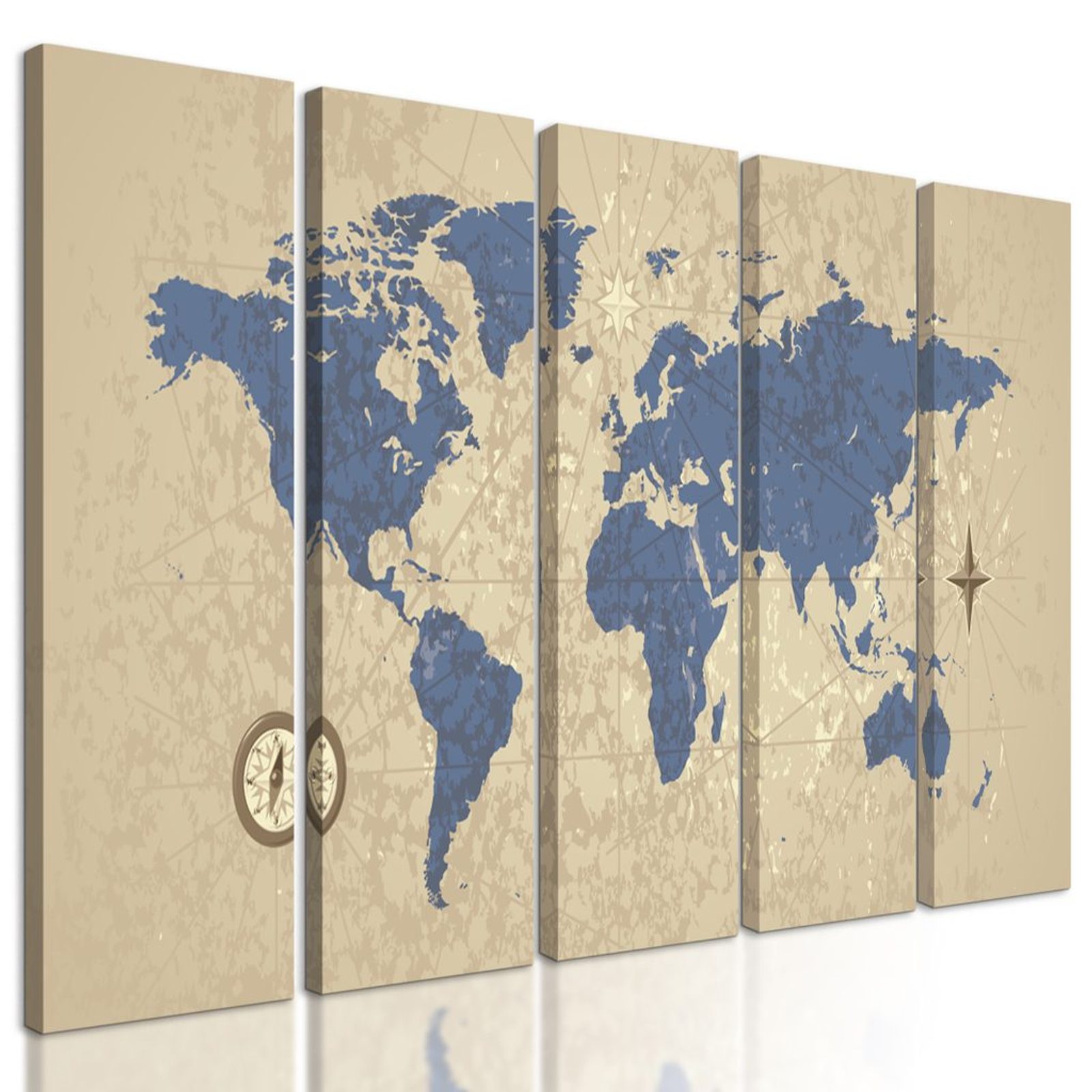 Obraz na korku mapa světa s historickým nádechem v zeleném provedení