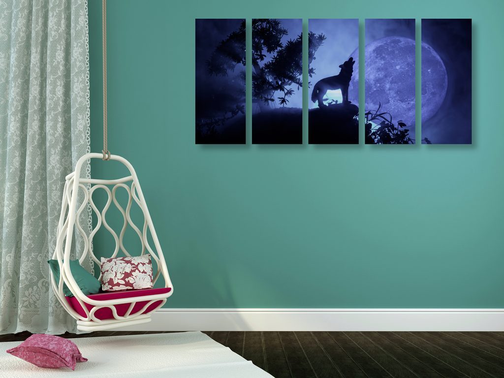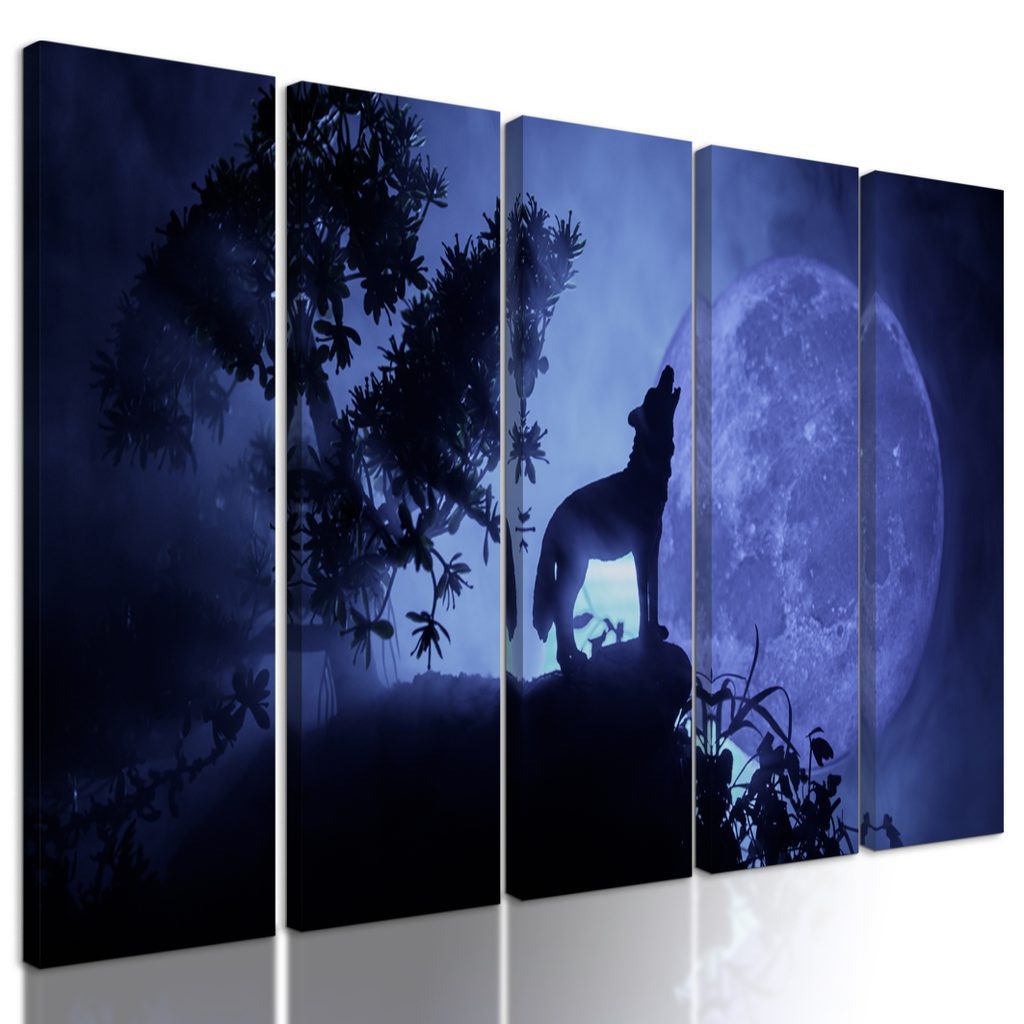 5-dílný obraz vlk vyjící na měsíc