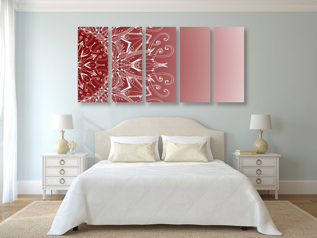 5-dílný obraz zajímavá Mandala na bordó pozadí