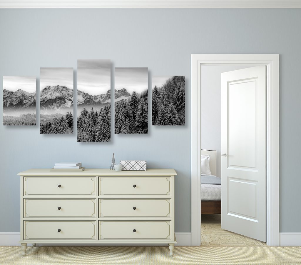 5-dílný obraz zamrzlý les v černobílém provedení