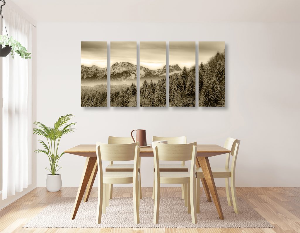 5-dílný obraz zamrzlý les v sépiovém provedení