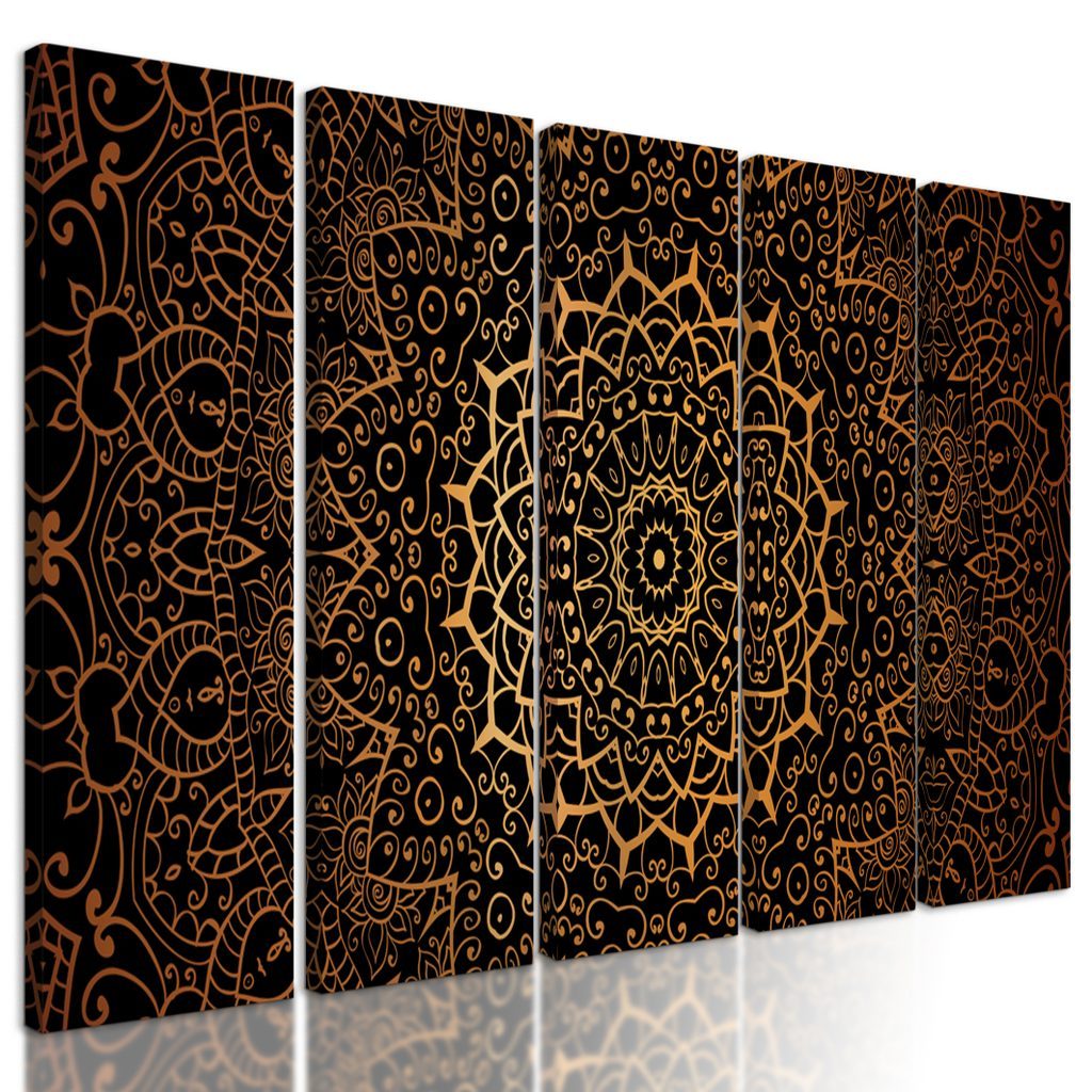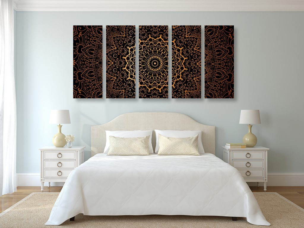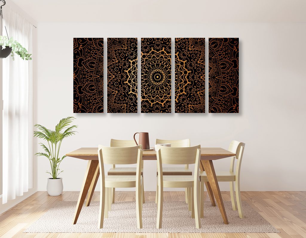 5-dílný obraz jemná květinová Mandala v černobílém provedení