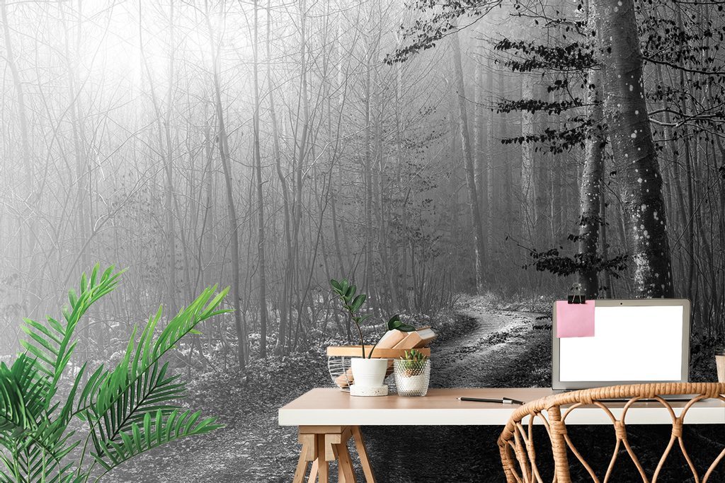 Fototapeta černobílá pohádková cesta lesem