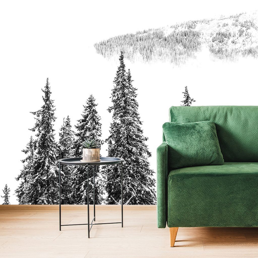 Fototapeta černobílé stromy pokryté čerstvým sněhem