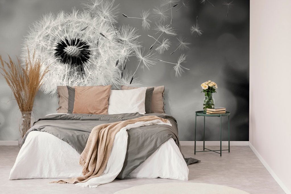 Fototapeta černobílý dotek pampelišky s větrem