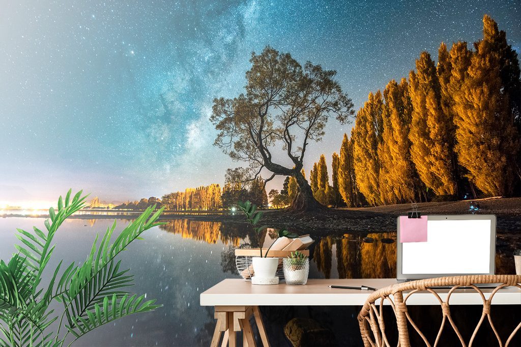 Fototapeta hvězdná obloha nad jezerem